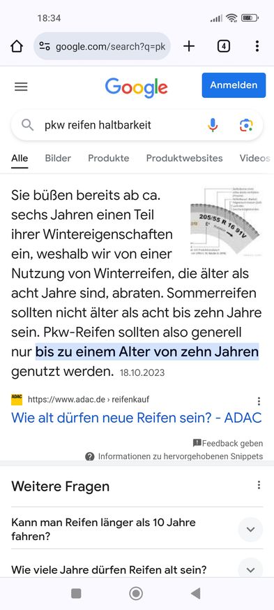 Manni, noch die ersten Reifen!? Die sollte man doch nach ca. 7 Jahren wechseln. Könnte bei einem Unfall Stress mit der Versicherung geben.