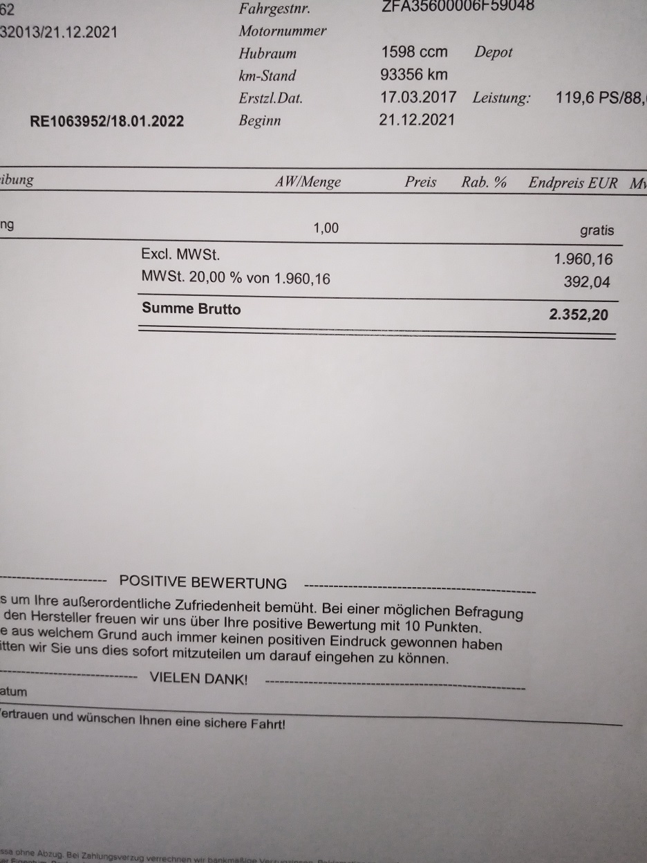 Falls mal die Frage aufkommt was sowas kostet und was gemacht werden muss (habe den Händler im Briefpapier mal unkenntlich gemacht):