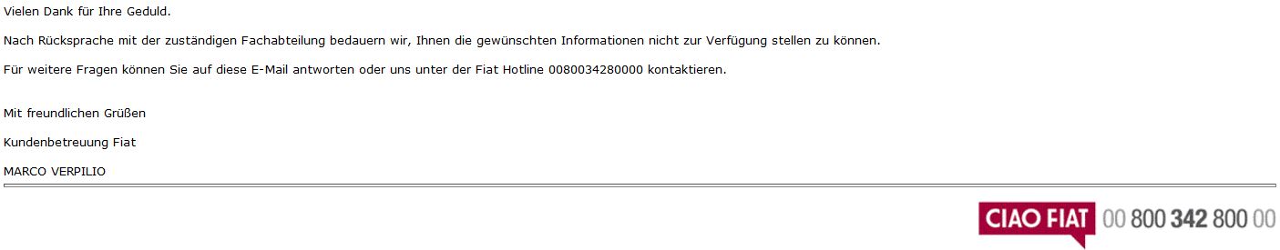 ich habe auf deine Frage am 8. Juli eine Anfrage an Fiat Österreich geschickt.