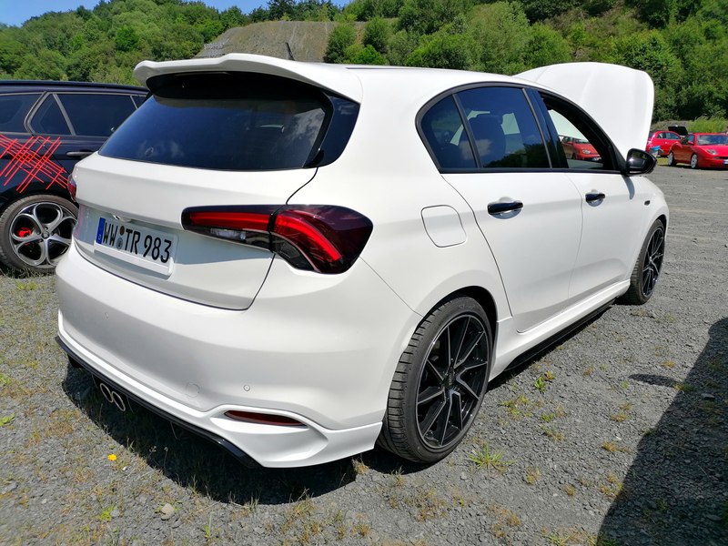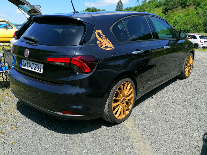 • Mein Fiat: Fiat Tipo Sport 1,4T-Jet, Vollausstattung, Leistungssteigerrung von Pogea Racing 147PS 300Nm, Sommer und Winterradsatz Dotz Spa Dark 8x18" ET35 225/40 18", Bilstein B8 Sportstoßdämpfer, H&R 40/35 Federn, Smoke Nebelscheinwerfer, K&N Sportluftfilter, Evolity Stahlflexbremsleitungen, Bremssättel schwarz lackiert, schwarze LED Seitenblinker, Schaltwegverkürzung Novitec, cleaner Kühlergrill (Eigenbau), Heckklappe clean (Schriftzug,Logo,Scheibenwischer entfernt), LED Facelift Heckleuchten, handgefertigte Edelstahl Abgasanlage ab Kat von Wimmer Rennsporttechnik 80er Doppelendrohr fahrzeugmittig, 200 Zellen Sportkat von Wimmer Rennsporttechnik, Sportlenkrad, MOMO Schaltknauf, überarbeitete Schaltmanschette, individuelle Fußmatten, Kurzstabantenne Simoni Racing, Motoranbauteile lackiert, diverse Silikonschläuche, Dämmmatte Motorraum zu Showzwecken überarbeitet, Haubenlift, LED Fernlicht, Zusatzinstrument in A-Säule (Ladedruck,Öldruck,Öltemperatur,Boardspannung), DTE Pedalbox, Hifiausbau Audison SR 5.600 Verstärker, Frontsystem Audison AV K6, Hecksystem Audison AV 6.5, Subwoofer Hertz MP 300 D4.3 Pro, Hochtöner in Spiegeldreiecke verbaut, Subwoofer in Reserveradmulde verbaut,