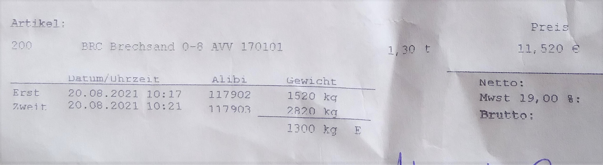 Die Waage wägte 1380 kg