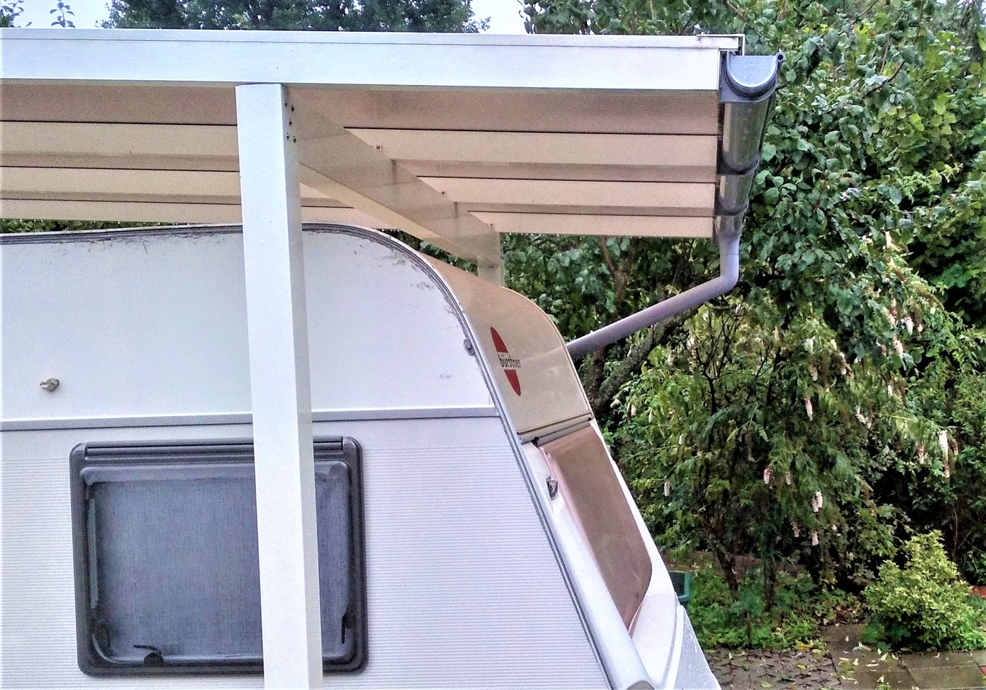 Verrottungsfest und hagelsicher, also GFK mindestens an Dach, Boden und Front.