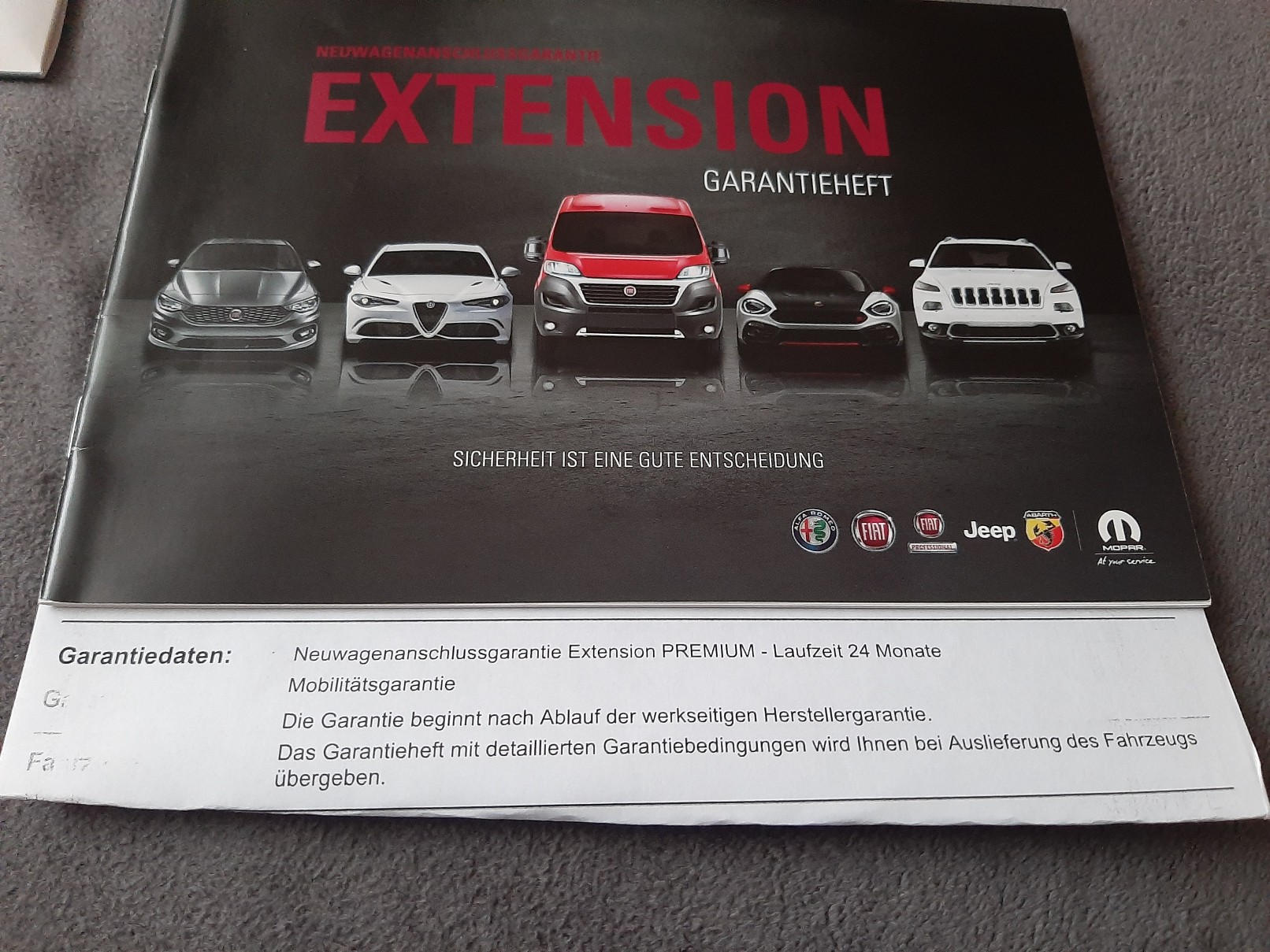 Da mir seit ein paar Monaten bei myFiat nur noch die 2 Jahre Werksgarantie angezeigt wird und die 2 Jahre Anschlussgarantie (bis 40 000km) nicht mehr( wurde mir vorher immer angezeigt) habe ich gerade mal nachgefragt und die sollen mal schauen.