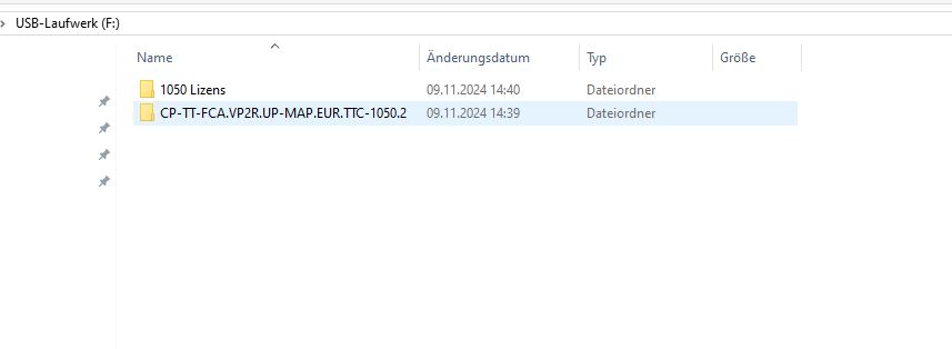 Habe nu die beiden Zip Ordner (Lizenz und CP-TT-....) entpackt auf den formatierten FAT 32 USB Stick übertragen. Das Auto reagiert Null auf den eingesteckten Stick. Dann den Stick auf ExFat formatiert und wieder die entpackten Dateien rübergeschoben. Null Reaktion.