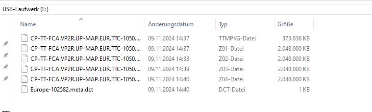 Habe nu die beiden Zip Ordner (Lizenz und CP-TT-....) entpackt auf den formatierten FAT 32 USB Stick übertragen. Das Auto reagiert Null auf den eingesteckten Stick. Dann den Stick auf ExFat formatiert und wieder die entpackten Dateien rübergeschoben. Null Reaktion.