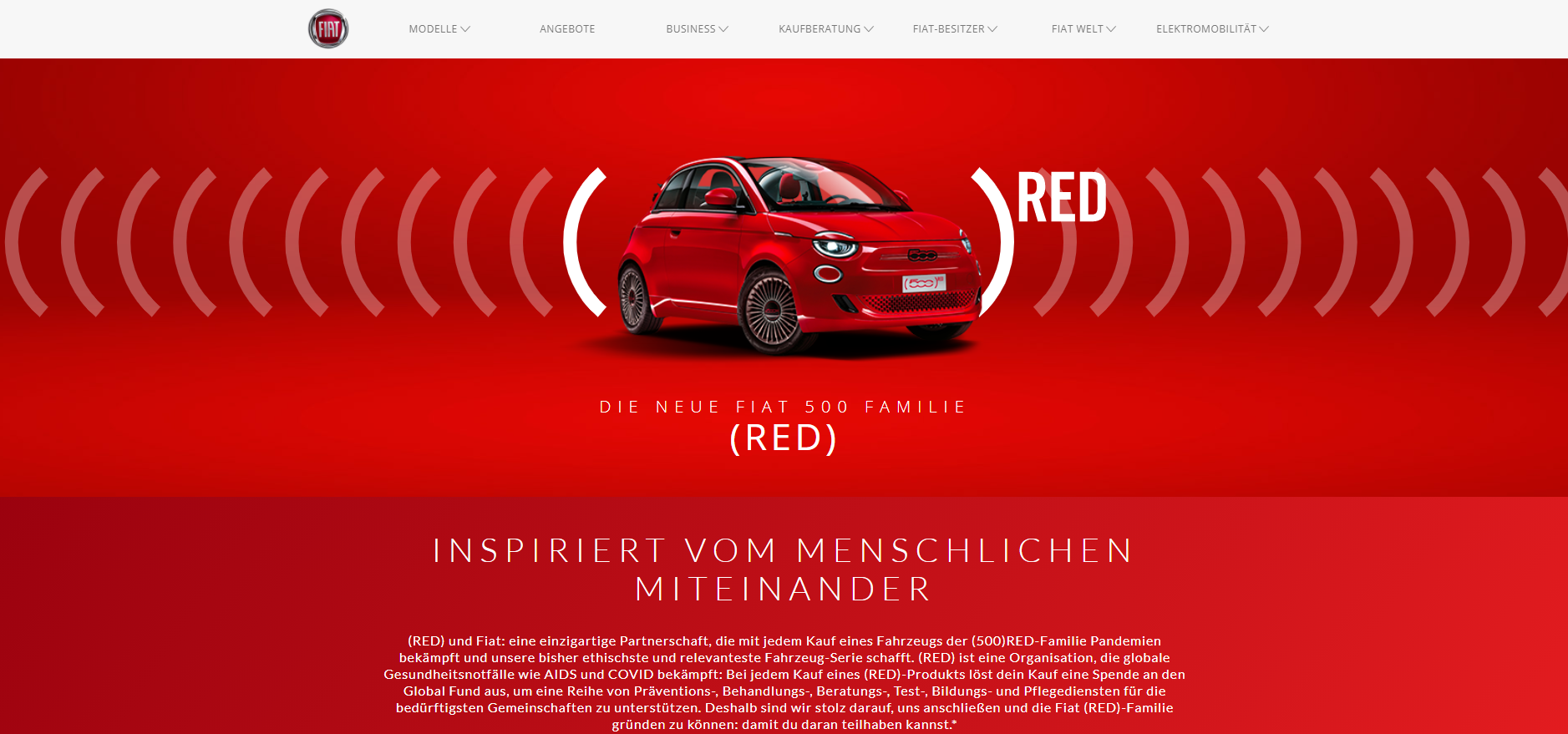 • Gemeinsam mit Jeep und RAM folgt FIAT mit (RED) dem Aufruf, den weltweiten Kampf gegen Pandemien durch die Einführung von (RED)-Sondermodellen zu unterstützen, dafür werden in den nächsten drei Jahren mehr als 4 Millionen Dollar bereitgestellt