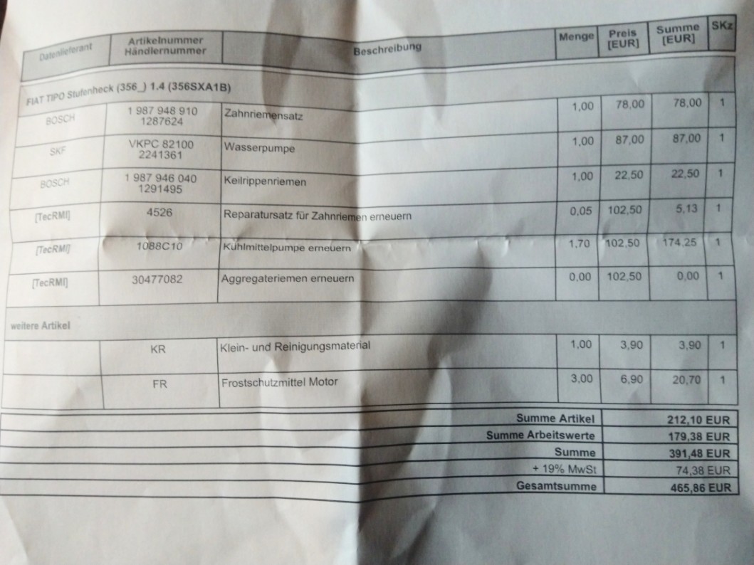Da war ja bisschen mehr am Wagen zumachen, hier nochmal der ganze Batzen, wie viel genau nur für den Zahnriemen an Arbeitszeit drauf ging, lese ich da nun nicht raus, aber ihr vielleicht?