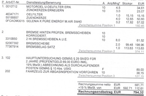 Unverschämt finde ich die letzte Position, Vorführen zur HU. Die Arbeit macht da ja sicher auch die Prüforganisation.