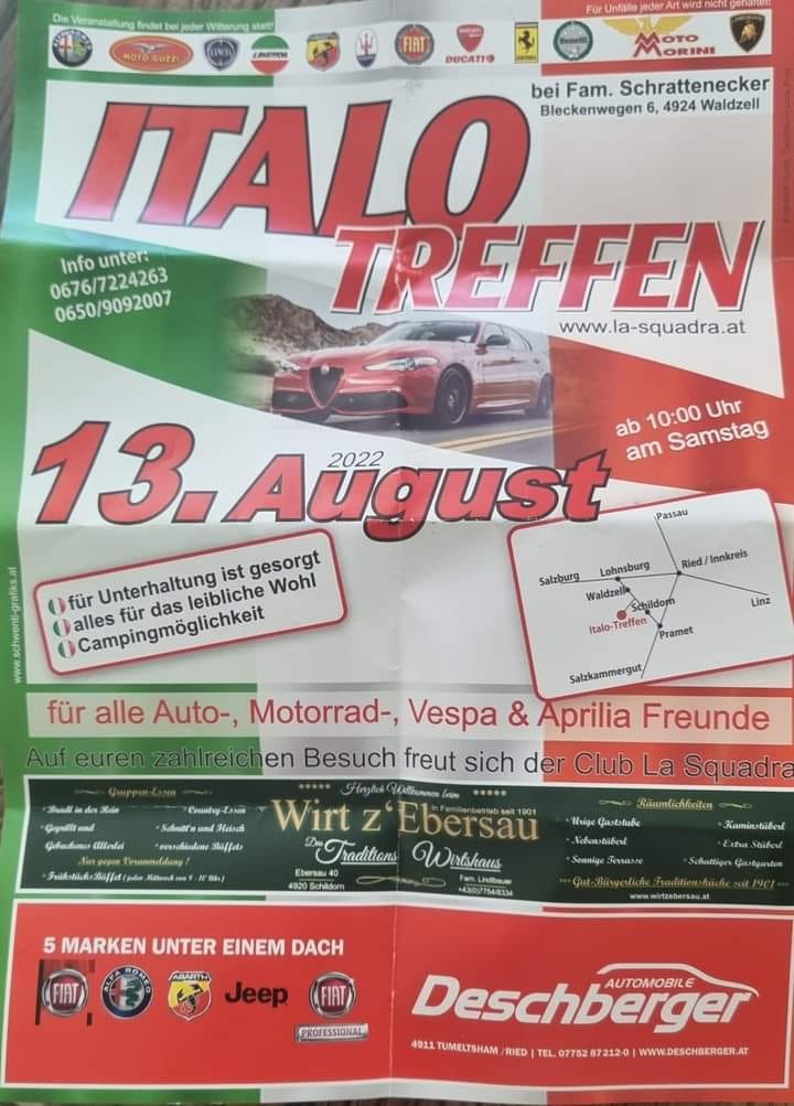 Auch dieses Mal war das Italo-Treffen gut besucht. Bei optimalem Wetter zählten wir einmal mehr über 250 Fahrzeuge.