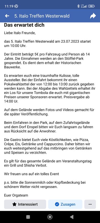 Leider finde ich im Netz und auf Facebook zum Programm gar nichts, außer das man möglichst keine Getränke und Essen mitbringen und die Lokale Gastronomie unterstützen soll.
