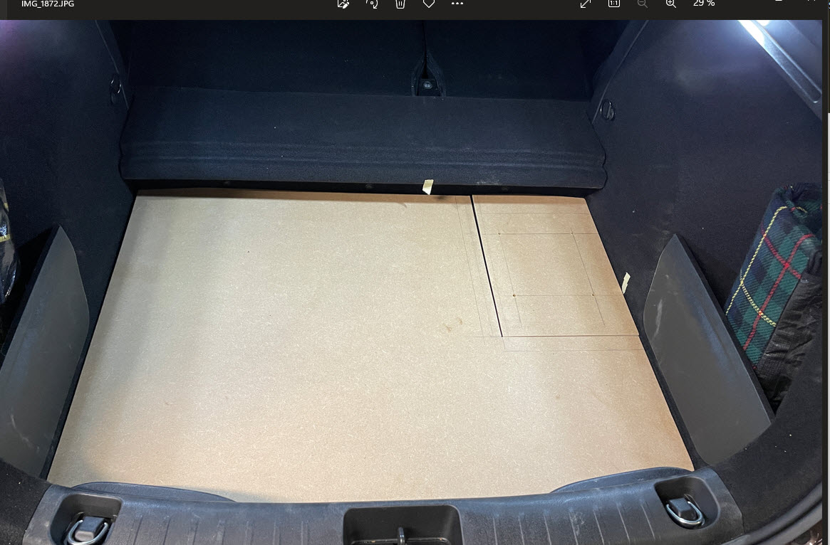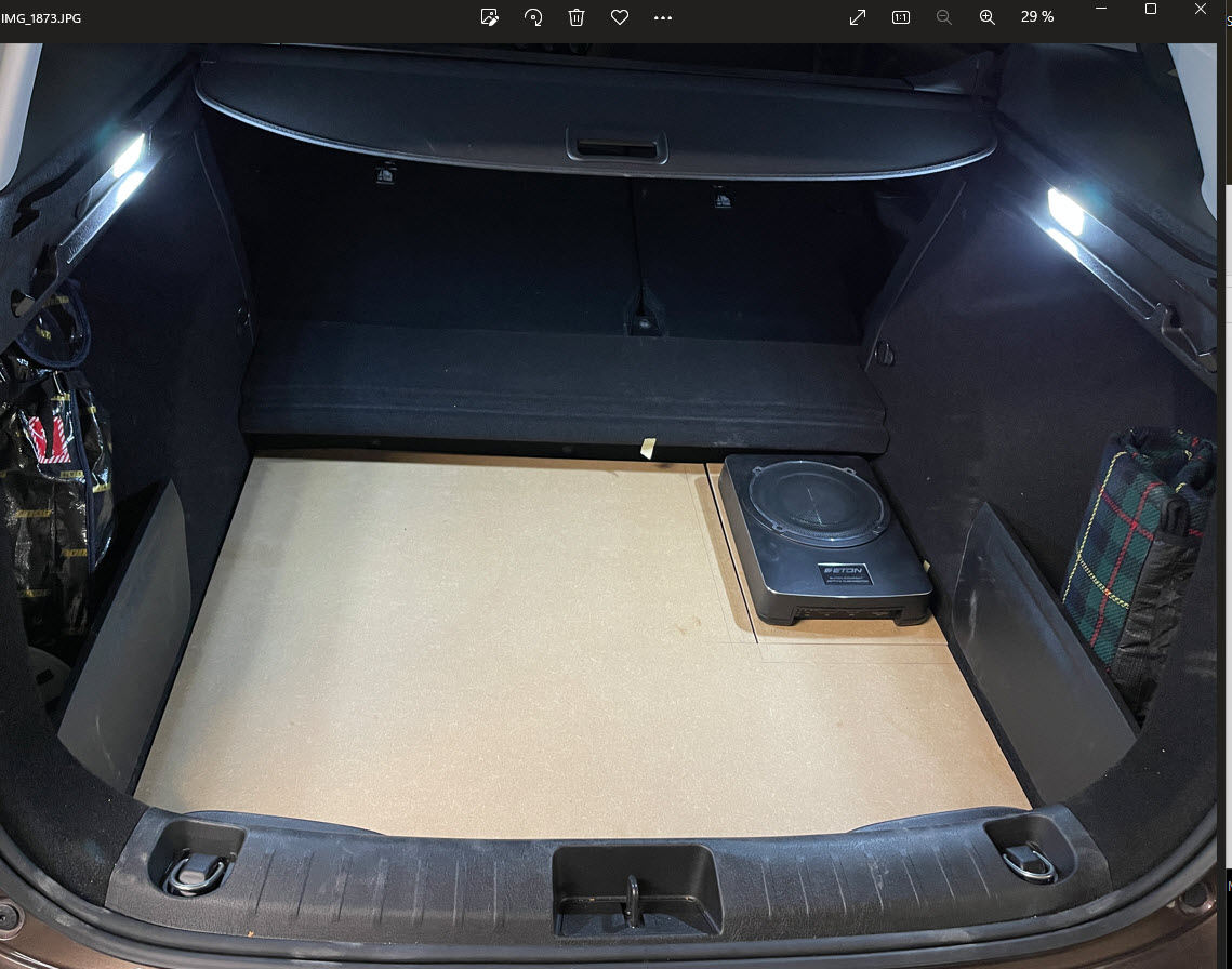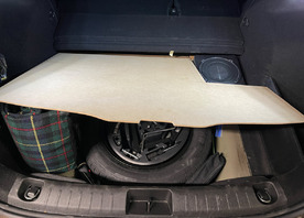 Ich habe mich für den Einbau des Subwoofers in den Kofferraum entschieden, da unter dem Beifahrersitz leider kein Platz gibt. Ich habe eine neue MDF-Platte vorbereitet und den Subwoofer wird mit dem Tesa Klettband befestigt. Ich werde die restlichen Fotos posten, wenn ich mit der Arbeit fertig bin.