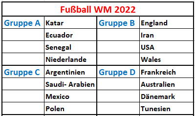 WM 2022 - Welche Mannschaften werden Gruppensieger? (Gruppe A - Gruppe D)