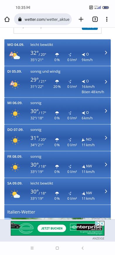 Heute in der Spitze 25grad