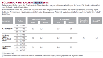 Der Druck ist in allen Rädern exakt nach Bedienungsanleitung vorhanden (Vorne 2,5+0,2=2,7bar ; hinten 2,2+0,2bar=2,4bar. Die +0,2bar sind laut Handbuch für Winterreifen zu verwenden). Nach dem Drücken des Resetknopfs links neben dem Lenkrad gibt es einen Signalton und eine Bestätigung im digitalen Tacho. Das ganze habe ich mittlerweile bestimmt 10x versucht, auch mit direkt darauf folgenden, langen Autobahnfahrten bei gleichmäßiger Geschwindigkeit.