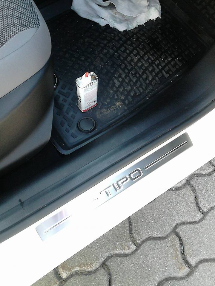 • So Freunde der schönen Künste, heute passte das Wetter und ich hatte endlich mal Zeit dem Tipo die oben gezeigten Leisten zu verpassen! Eine Beschreibung in dem Sinne muss ich ja für euch nicht hier einstellen, diese findet ihr bei den Leisten und Grundarbeiten wie entfetten, sauber und gerade arbeiten, traue ich jedem von euch zu! Wichtig wäre zu erwähnen, man sollte einen Fön mit hizuziehen, da die Schweller recht kalt sind, auch wenn es warm und sonnig ist, sollte der Untergrund eine hohe Temperatur haben, damit das 3M Band sofort "greift". Auch nachdem die Leiste fest sitzt, würde ich noch eine gewisse Zeit lang mit dem Fön für Temperatur sorgen, aber nicht zu heiß machen, das mag das Klebeband nicht! :)