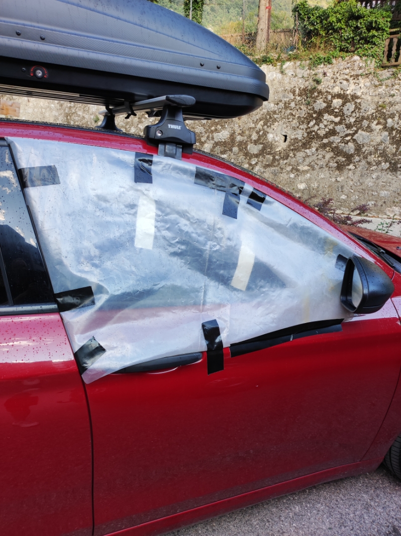 • Bin nördlich vom Gardasee, heute ist auf einem Parkplatz rechts vorne die Scheibe eingeschlagen worden. Handtaschenraub. Morgen zur Polizei und zu Carglass. 150€ Selbstbeteiligung.
