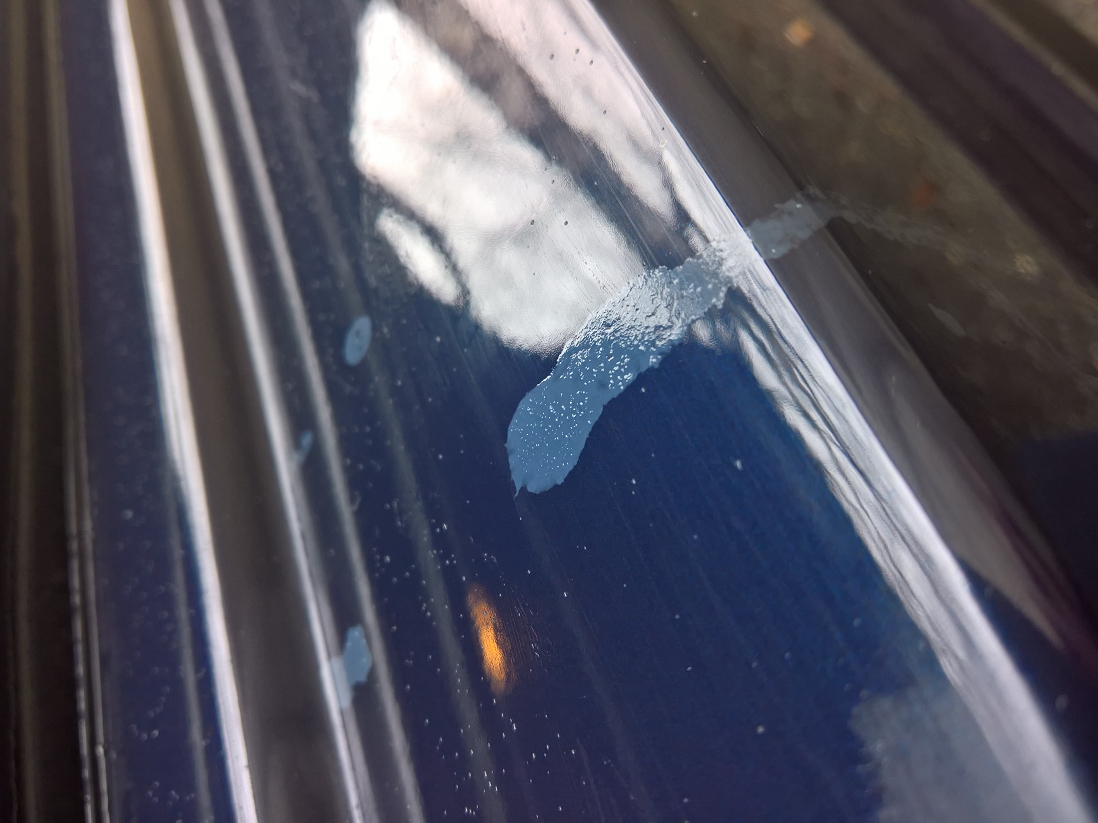 Tja und jetzt habe ich auch auf einmal Flecken im Lack, die Aussehen wie wenn etwas drüber gelaufen ist!