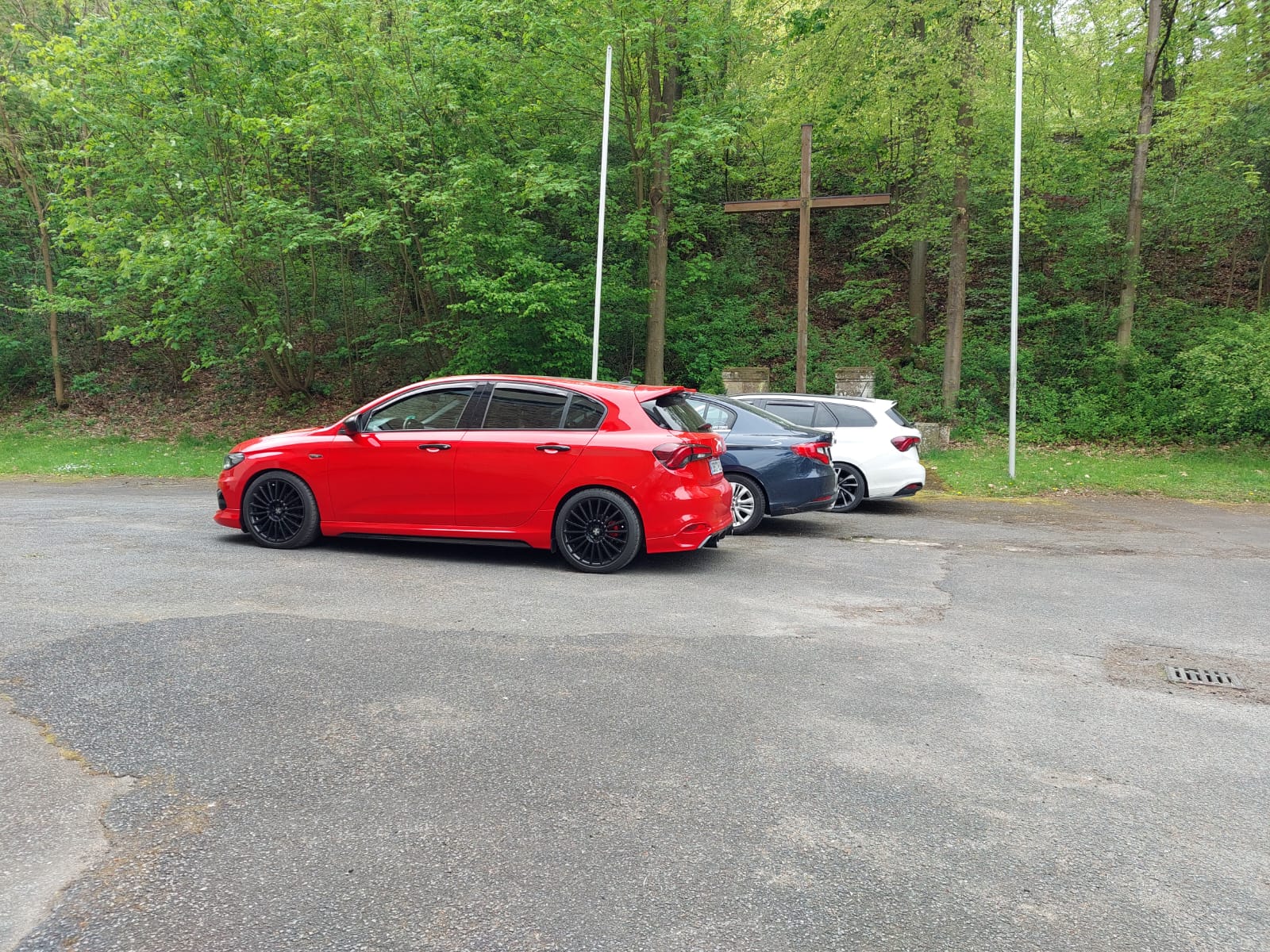 Mein Fiat: Kombi Lounge T-Jet, Cinema Black, 235er auf Dotz Revvo black 8J x 18", Schaltwegverkürzung, Eibach pro, Siemoneit Leistungsoptimierung, DTE Pedal-Box, Maxton Front und Heck, CSR "böser Blick" und Heckaufsatz