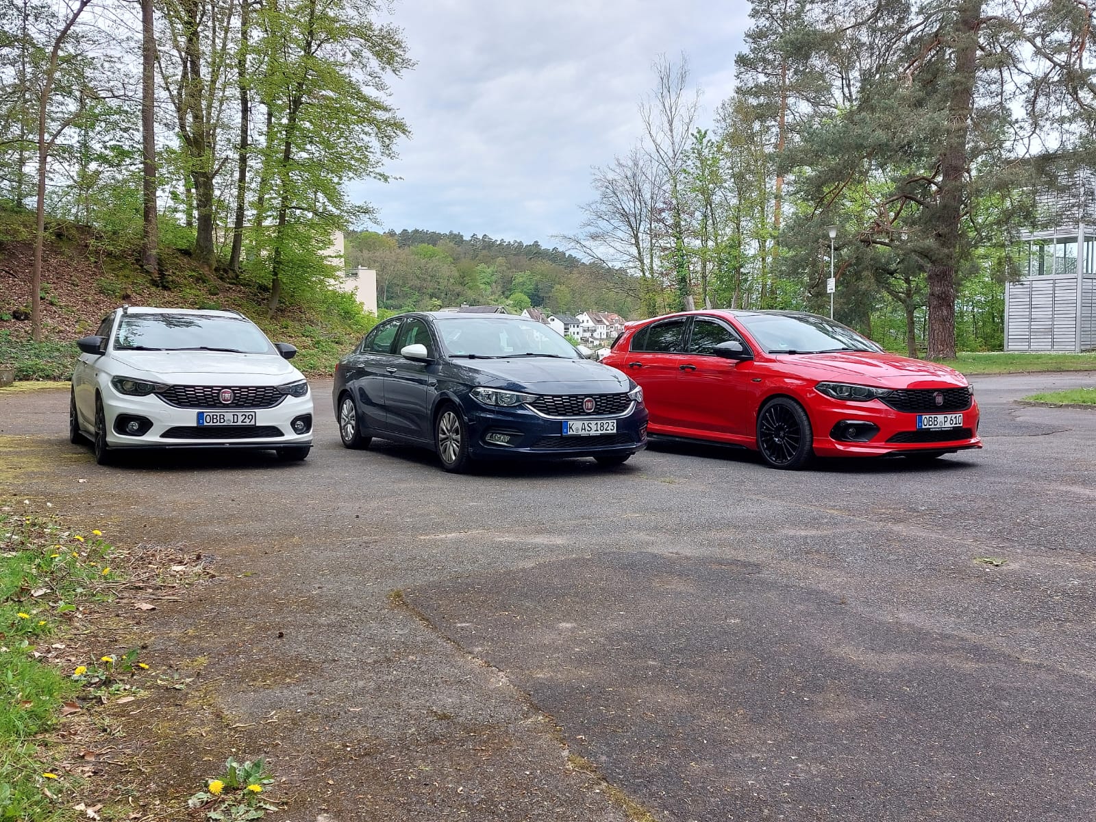 Mein Fiat: Tipo Limousine, Pop, Tech-Paket, 95 PS, Benziner, rot, Vogtlandfedern, Bilsteindämpfer, Dach- und Frontspoilerfolierung, EZ: 6/2016, 130.500 Kilometer; Renault Clio 3, Benziner, blau, 75 PS, EZ: 3/2008, 223.500 km