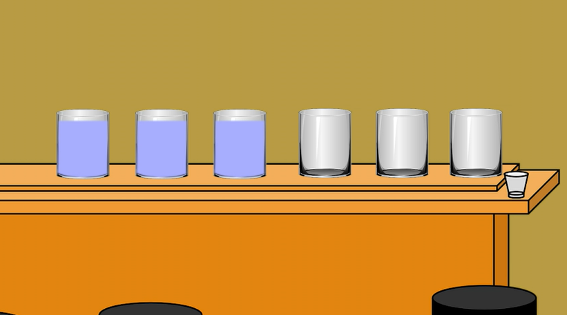 Ich kippe den Inhalt aus Glas 5 in Glas 2 und stell es zurück.