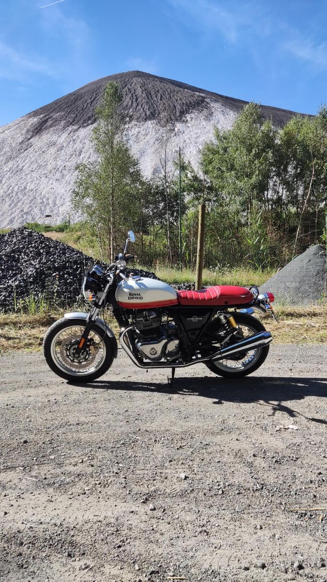 Ich wollte einen alten Look, aber möglichst mit moderener Technik. Ich will fahren und nicht schrauben. Ein schöner Caferacer wäre was. Also gegoogelt und nachgesehen was es so gibt. Leider schnell festgestellt das es von meiner Haus- und Hofmarke Honda da leider nichts für mich gibt. Ziemlich schnell bin ich dann auf Royal Enfield gestoßen. Bin (war) jetzt nicht wirklich ein Fan dieser indischen Marke, aber wenn man sich nun mal verliebt hat 8| . Die erste Wahl war ein klassischer Caferacer eine Continental GT650. Gefällt mir auch nach wie vor am besten, aber Stummellenker und Fußrasten recht weit hinten....? Ich weiß nicht. Wie auch immer, hatte dann im Netz eine Interceptor 650 (technisch identisch mit der Conti) gefunden, bin sie Probegefahren und habe sie mit 2300 km gekauft. Gefahren bin ich beide Modelle und ich muss sagen, eigentlich bräuchte man beide :saint: