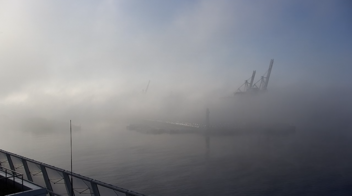 Hamburg nass und ungemütlich, auf der anderen Seite der Elbe Sonne heute, jeweils bummelig um die 10 Grad.