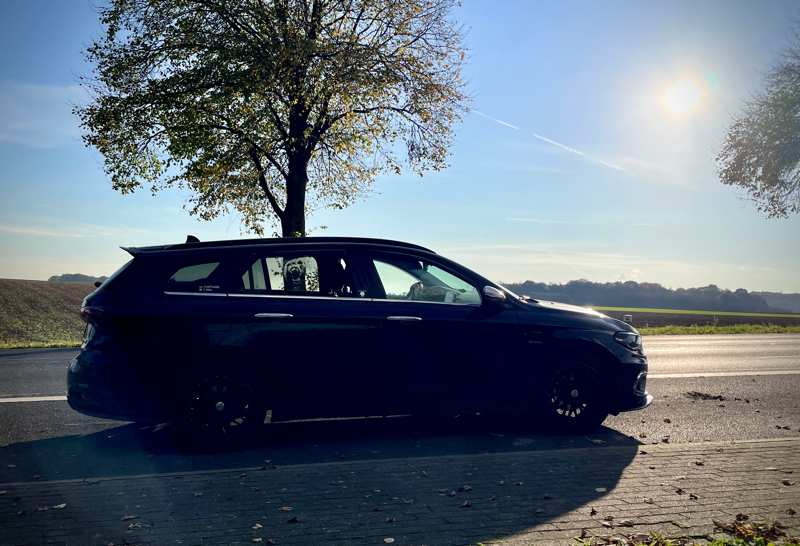 Mein Fiat: Kombi Lounge T-Jet, Cinema Black, 235er auf Dotz Revvo black 8J x 18", Schaltwegverkürzung, Eibach pro, Siemoneit Leistungsoptimierung, DTE Pedal-Box, Maxton Front und Heck, CSR "böser Blick" und Heckaufsatz