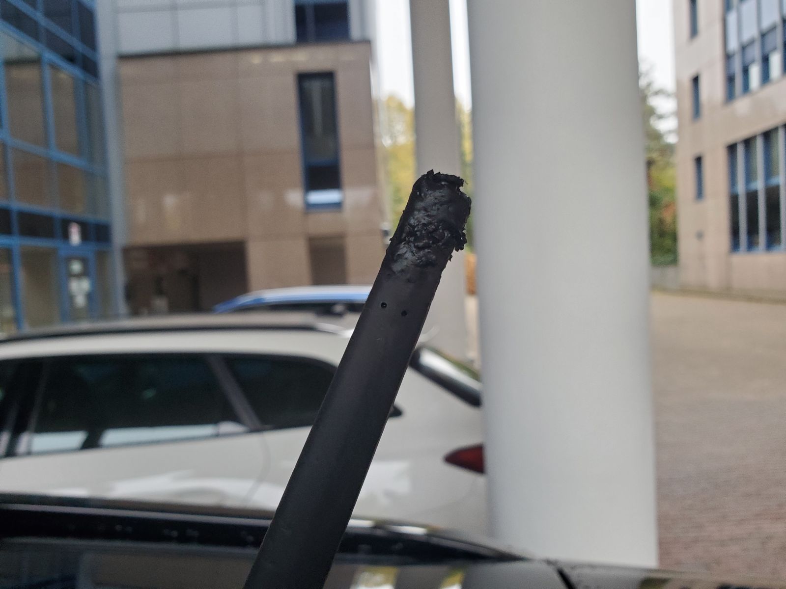 Oh, unsere Tiger verschmähen das Knabberstäbchen am Tipo. Aber wer Pappkarton zernagen kann, macht bestimmt vor Antennen auch nicht halt. ![]()