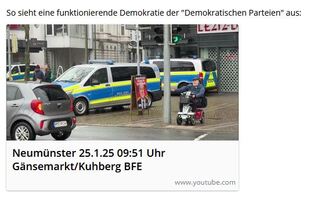 Neumünster 25.1.25 09:51 Uhr Gänsemarkt/Kuhberg BFEwww.youtube.comIch kann mich nicht erinnern jemals so etwas in meinem Heimatland gesehen zu haben.