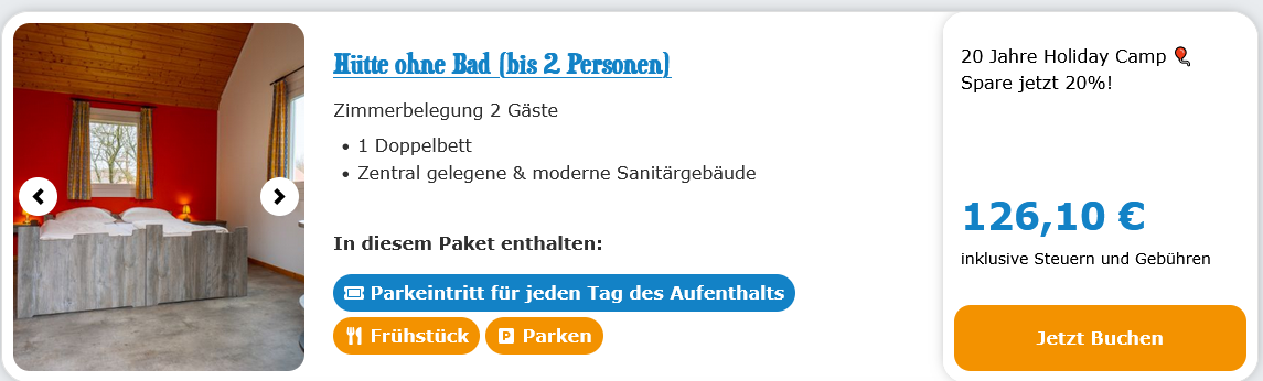 Eintritt in den Park, Frühstücken und Abendessen incl. der Übernachtung alles mit drin, also ich fand es damals mega 👍.