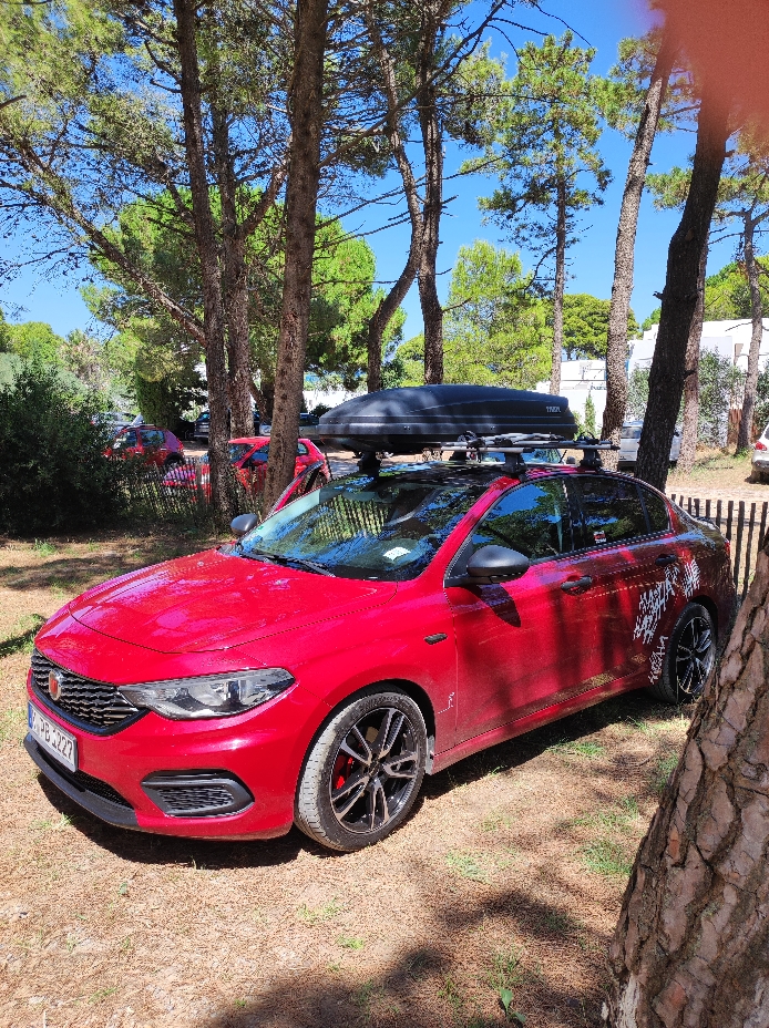 Mein Fiat: Tipo Limousine, Pop, Tech-Paket, 95 PS, Benziner, rot, Vogtlandfedern, Bilsteindämpfer, Dach- und Frontspoilerfolierung, EZ: 6/2016, 130.500 Kilometer; Renault Clio 3, Benziner, blau, 75 PS, EZ: 3/2008, 223.500 km