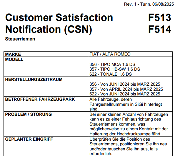 Es gibt einen Rückruf zum Zahnriemen!