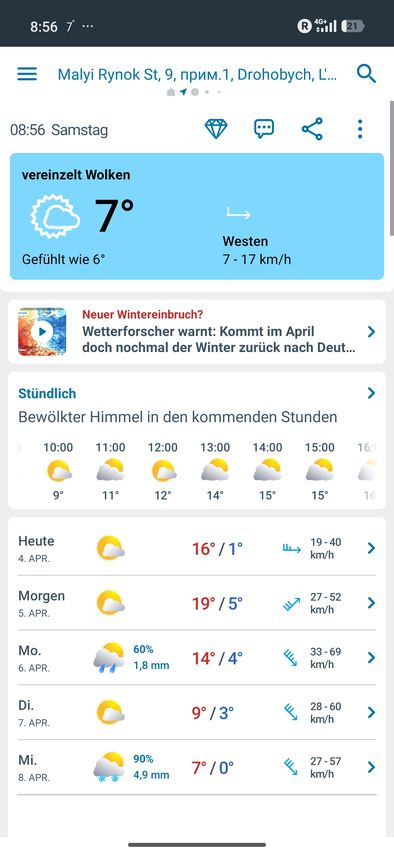 aktuell 6 windige grad,aber ab morgen wird es Schön im Südwesten,passend zu ostern ![]()