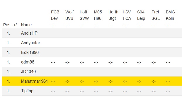 • Wäre eine gute Idee. Bin zwar schon mit den Firmenkollegen bei kicktipp, aber "Why not". :)