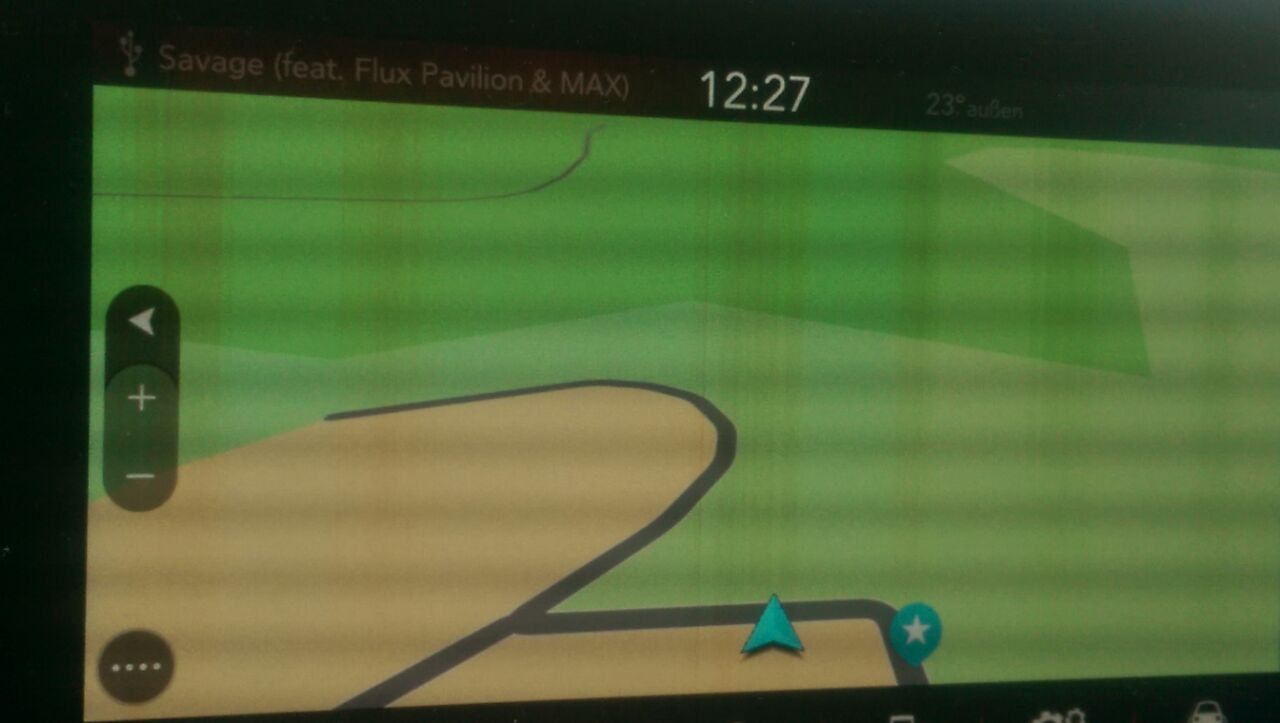 2h in praller Sonne und beim los fahren waren farbverfälschungen und senkrechte Streifen auf dem Display. Nach 20min Fahrt war alles wieder ok. (kann gerade kein Bild uploaden von Smartphone aus da zu groß)