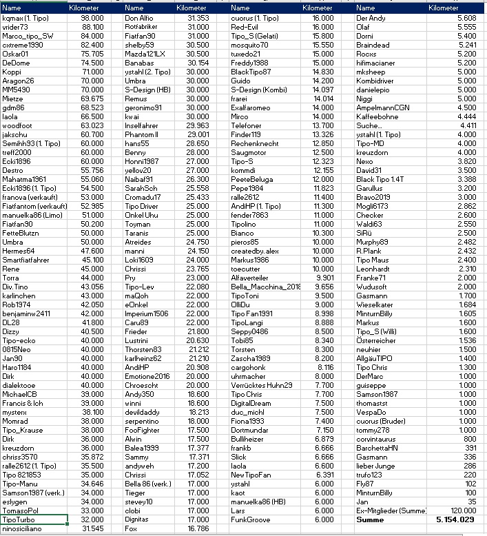 Wie viel Tipo Kilometer habt Ihr schon geschafft?