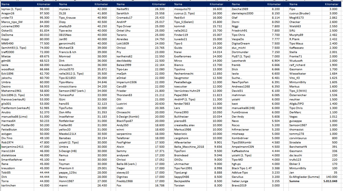 Wie viel Tipo Kilometer habt Ihr schon geschafft?