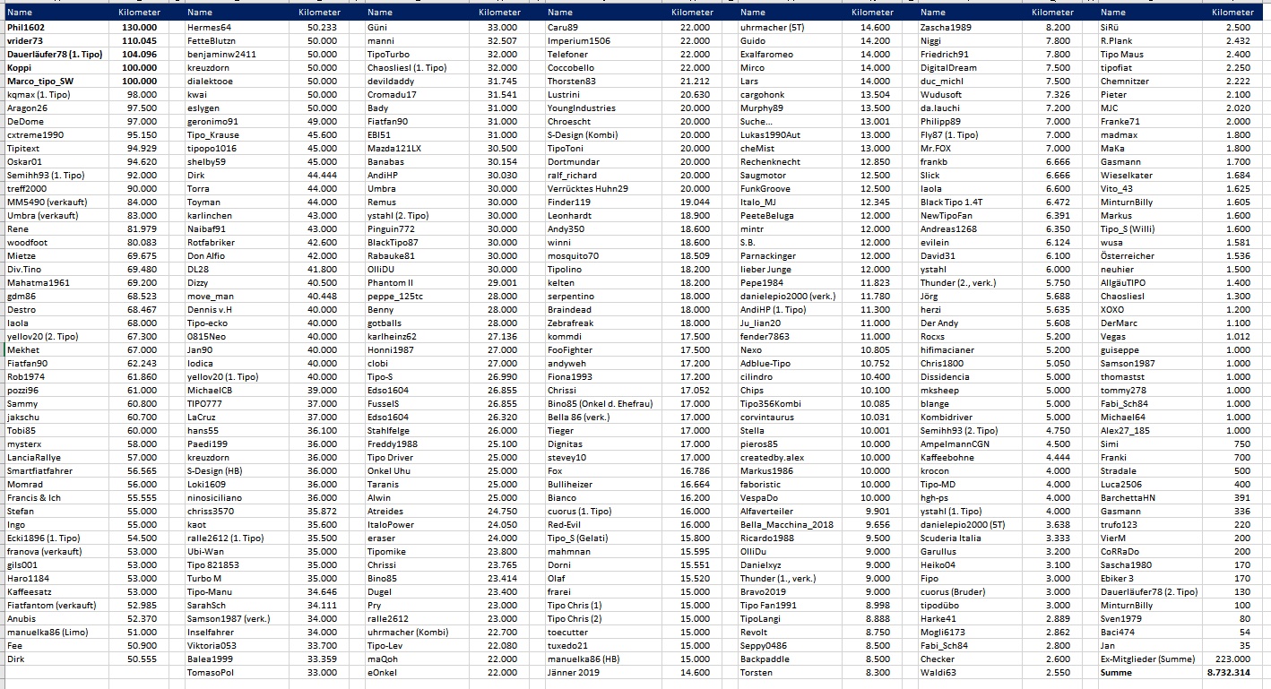 Wie viel Tipo Kilometer habt Ihr schon geschafft?