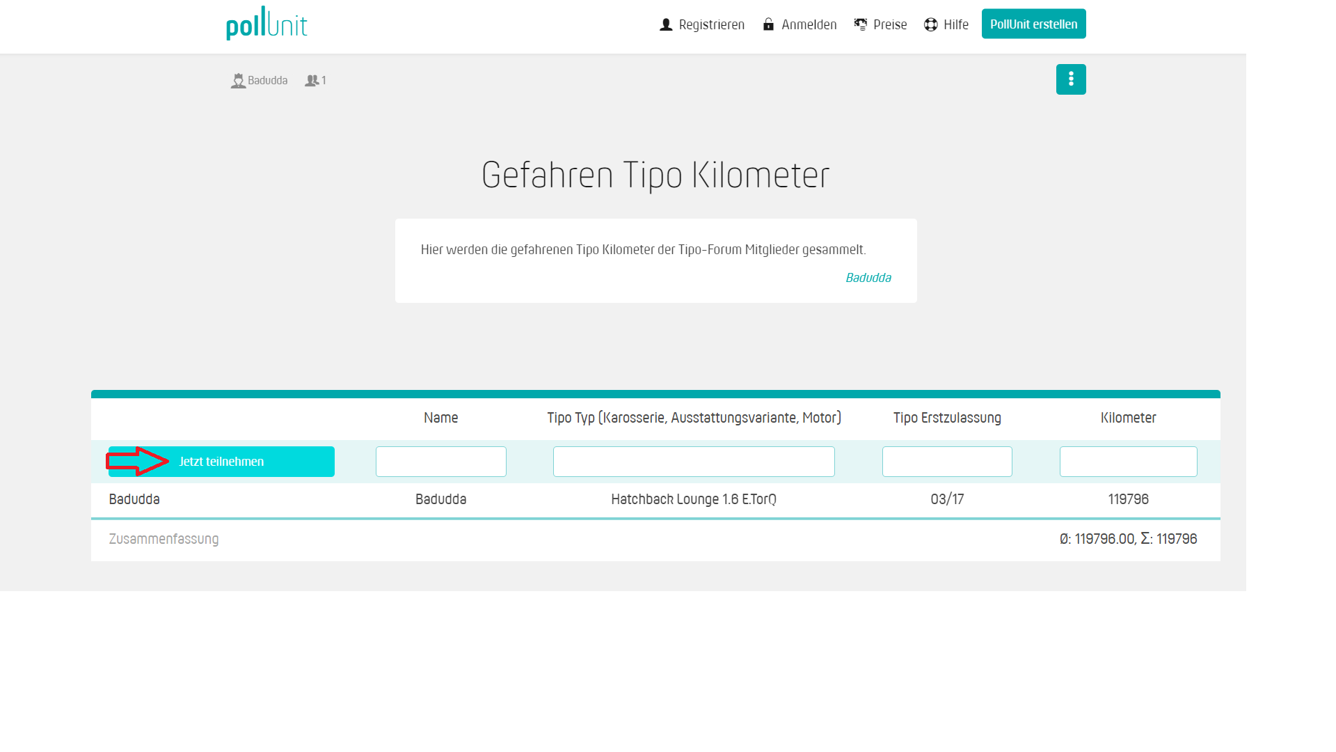 Hast du auf das oberste "Jetzt Teilnehmen" geklickt, deinen Namen eingegeben und " Als Gast weitermachen" gedrückt?Ich kann dich sonst nochmal aus der Tabelle hauen und dann probierst du es mal mit der "Jetzt Teilnehmen" Taste.