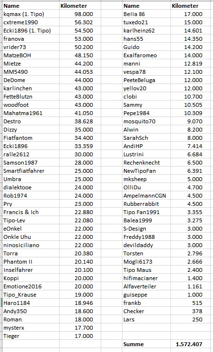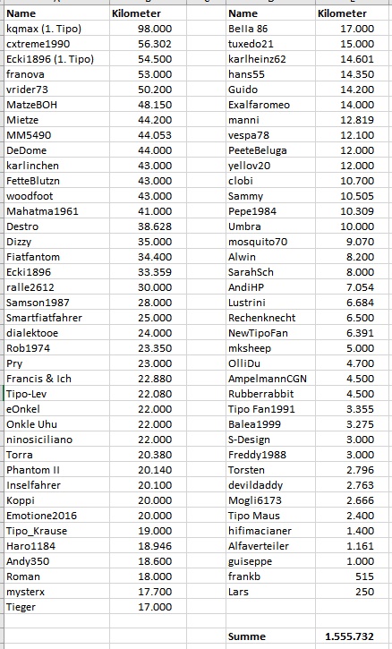 Wie viel Tipo Kilometer habt Ihr schon geschafft?