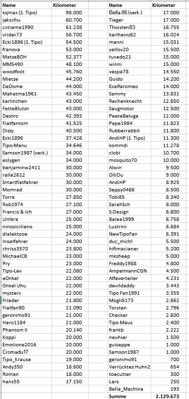 Wie viel Tipo Kilometer habt Ihr schon geschafft?