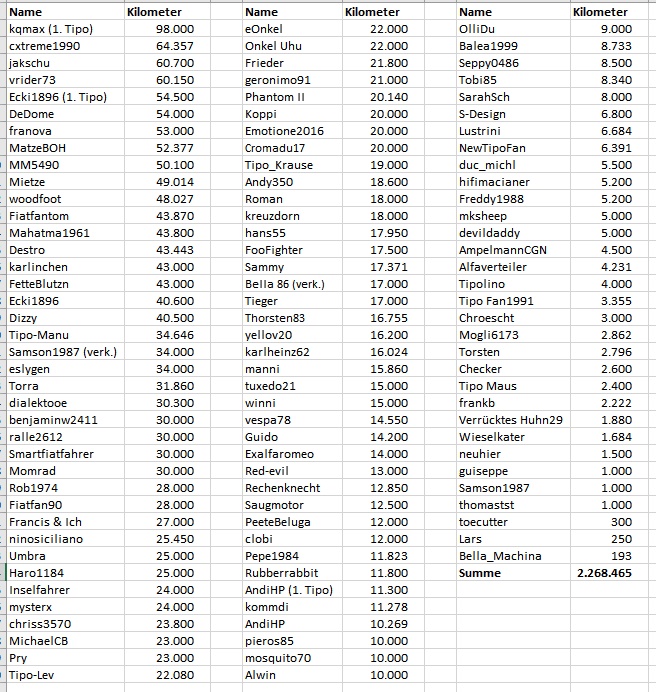 Wie viel Tipo Kilometer habt Ihr schon geschafft?