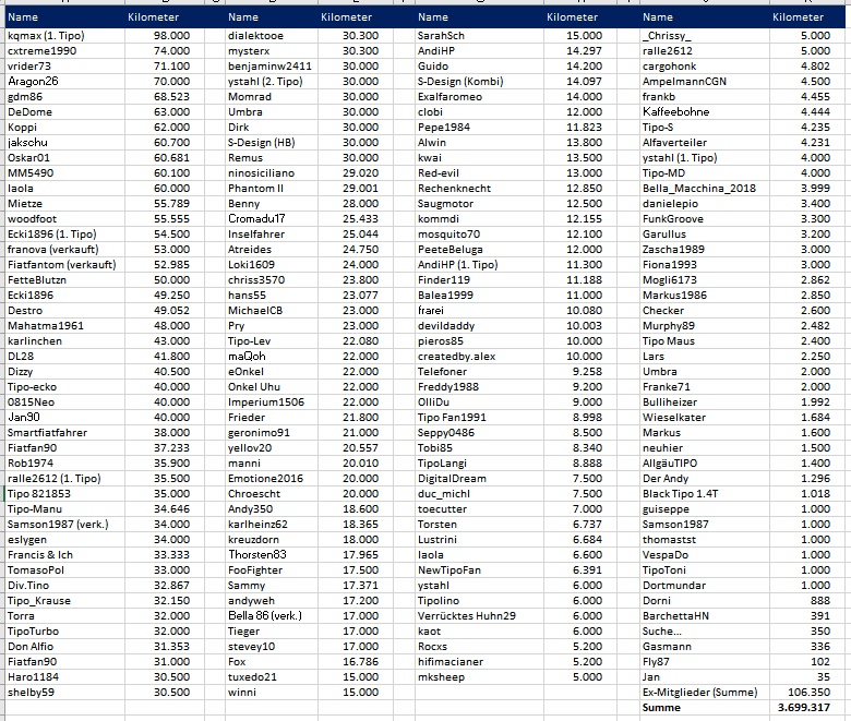 Wie viel Tipo Kilometer habt Ihr schon geschafft?