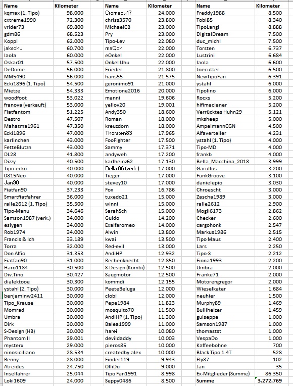 Wie viel Tipo Kilometer habt Ihr schon geschafft?