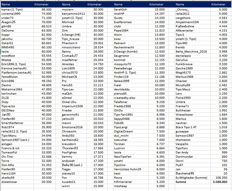 Wie viel Tipo Kilometer habt Ihr schon geschafft?