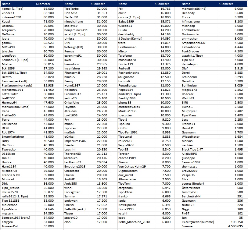 Wie viel Tipo Kilometer habt Ihr schon geschafft?