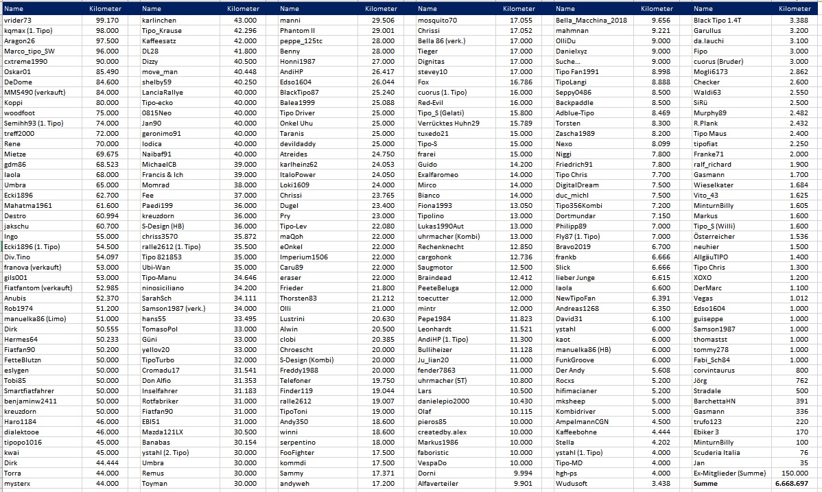 Wie viel Tipo Kilometer habt Ihr schon geschafft?