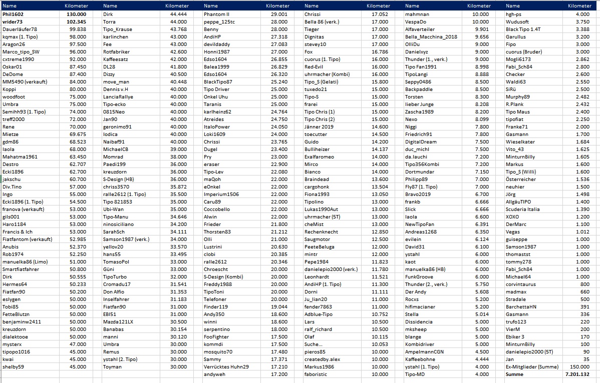 Wie viel Tipo Kilometer habt Ihr schon geschafft?