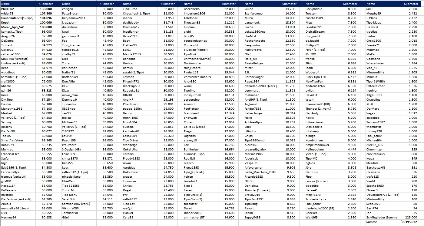 Wie viel Tipo Kilometer habt Ihr schon geschafft?