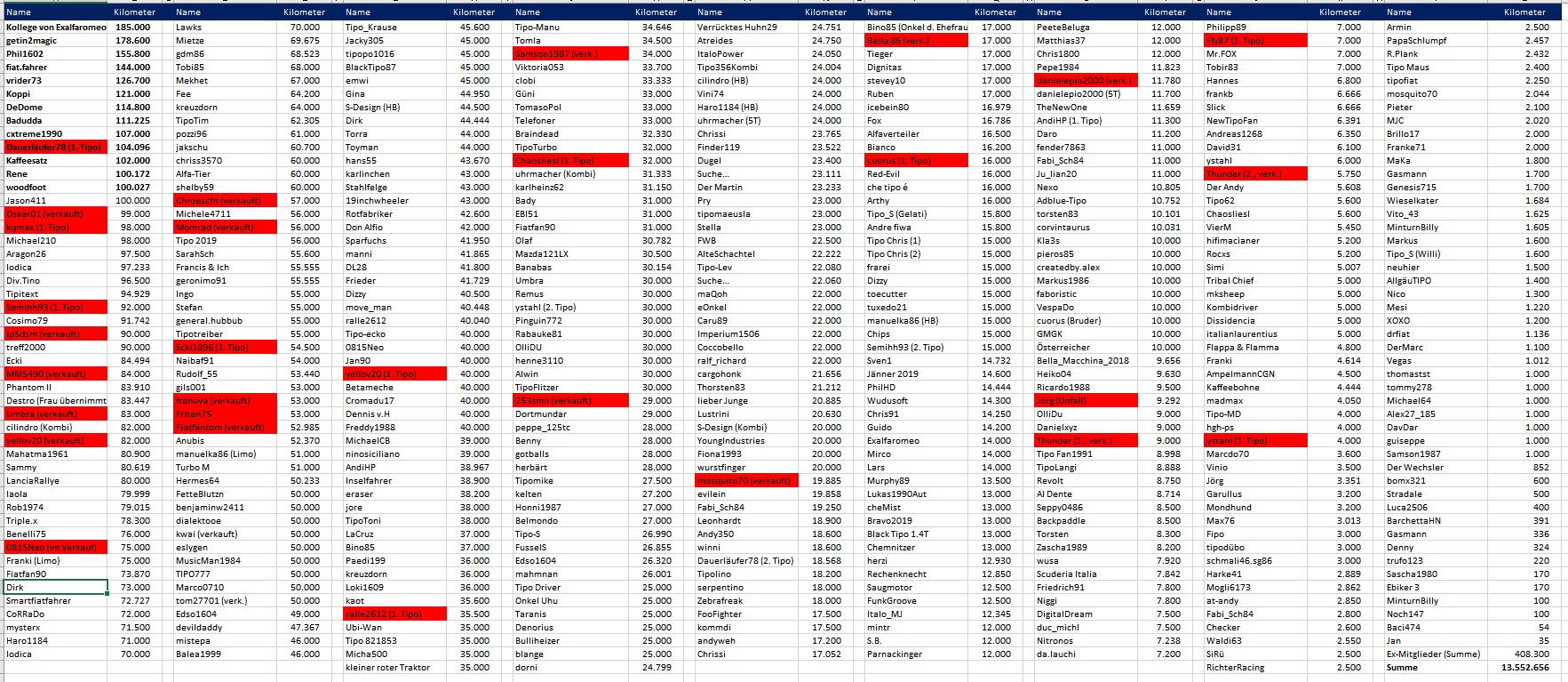 Yeah, wieder jemand der nach einigen Jahren aufgibt und noch vor mir stand.....irgendwann führe ich nach 15 Jahren die Tabelle an mit 300.000.... ![]()